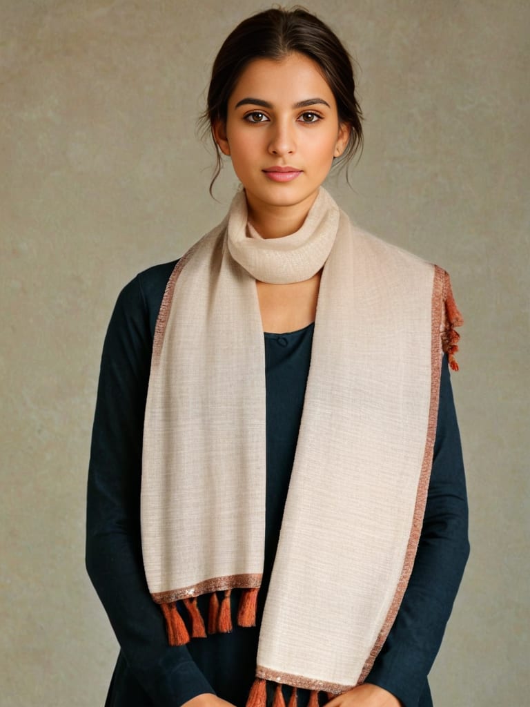 We work directly with Kashmiri artisans, small weaving units and trusted fabric houses. Every stole, scarf or dress begins with the fabric first – its touch, drape and authenticity – and then we design silhouettes that feel effortless on the body.